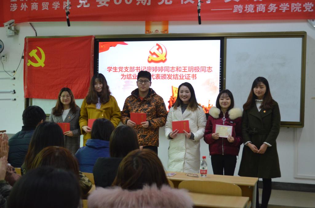学生党支部廖婷婷、王玥极书记为党校结业学员颁发结业证