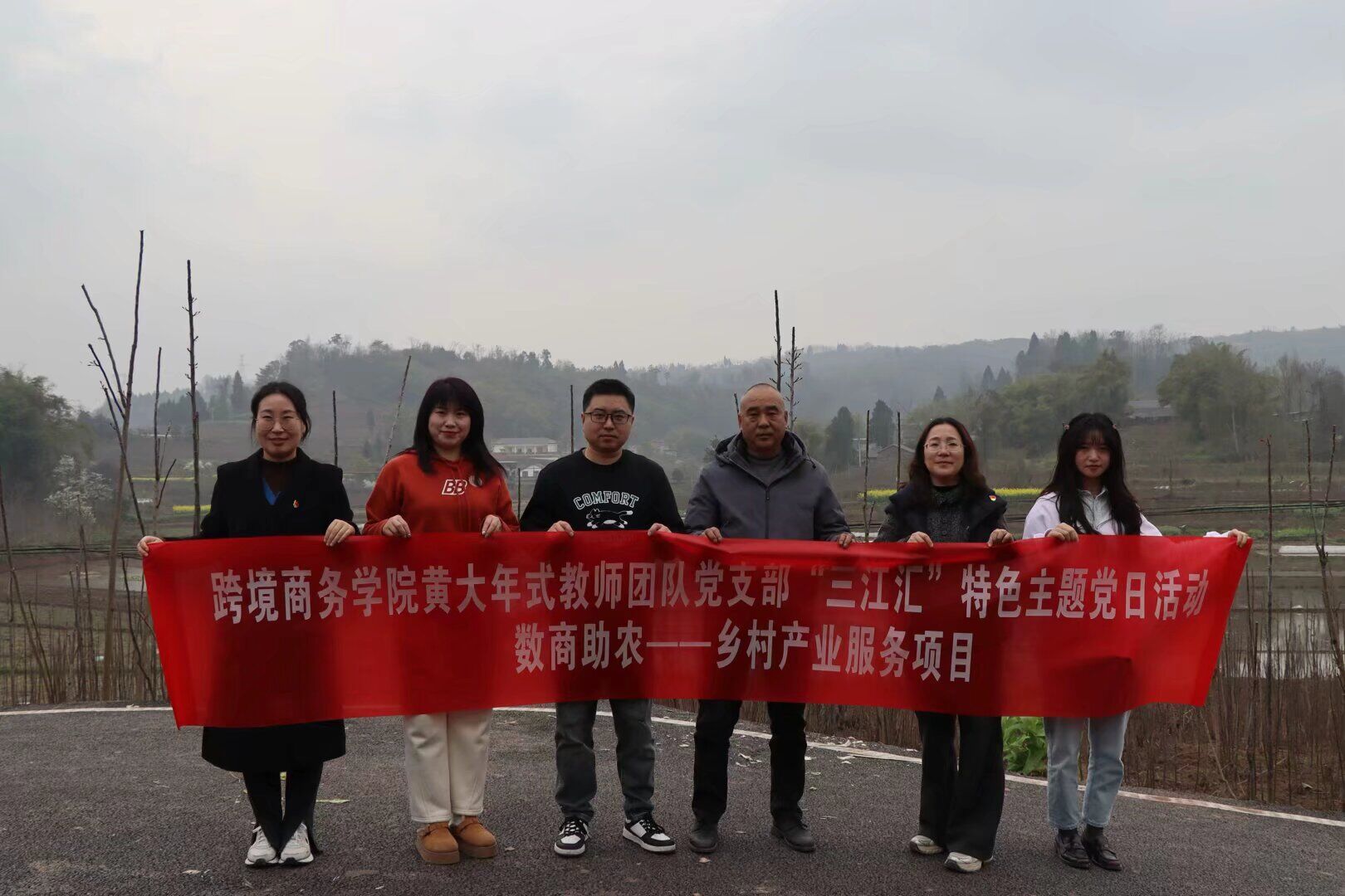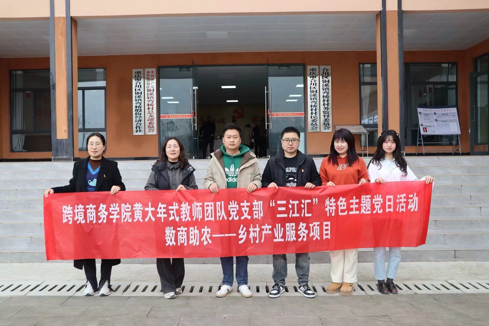 【本网讯】3月13日,跨境商务学院黄大年式教师团队党支部赴合川区铜溪镇开展了“三江汇”特色主题党日活动。在支部书记杨桢带领下,支部党员同志分别对铜溪镇的板桥村、弯桥村和皂角村进行了实地考察,重点关注了当地特色产业与创新项目,进一步认识到农村电商对推动地方经济发展的关键作用。