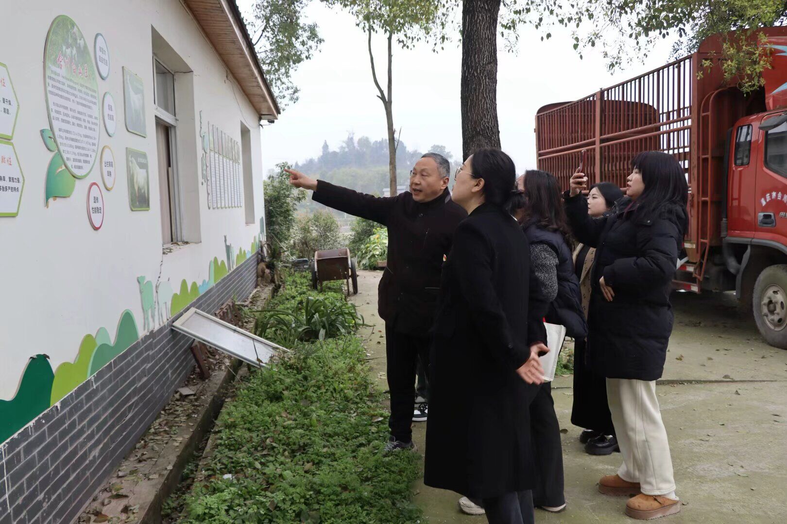 调研的首站是板桥村,支部书记杨桢与村书记何刚通过交流了解了村内的基本情况。板桥村的蜂糖李基地和合川白山羊养殖场成为主要产业,蜂糖李以其优质产量和独特风味具有市场竞争力,合川白山羊则凭借鲜美的肉质和丰富的营养深受欢迎。电商平台的介入拓展了这些产品的销售渠道,不仅推动了农业产业链的发展,还为村民提供了稳定的收入来源。