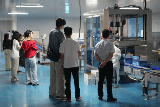 据了解,此次行动走访的企业——重庆陌然食品饮料有限公司,是一家集天然苏打水研发、生产加工、物流仓储、品牌运营与市场推广于一体的高效综合性企业。在企业负责人的引导下,教师党员实地参观了产品生产线、灌装车间及仓储物流系统,深入了解企业在智能制造、品质管控及产品创新等方面的典型做法,并前往水源地开展现场调研。