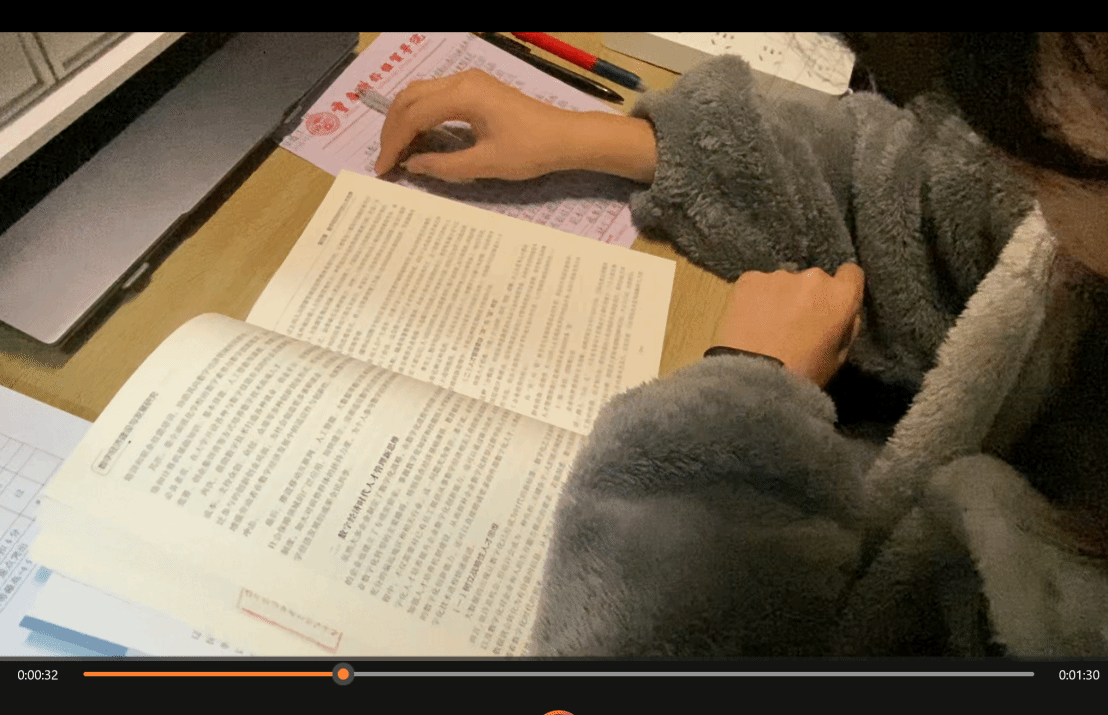 图为学生读书VLOG视频截图