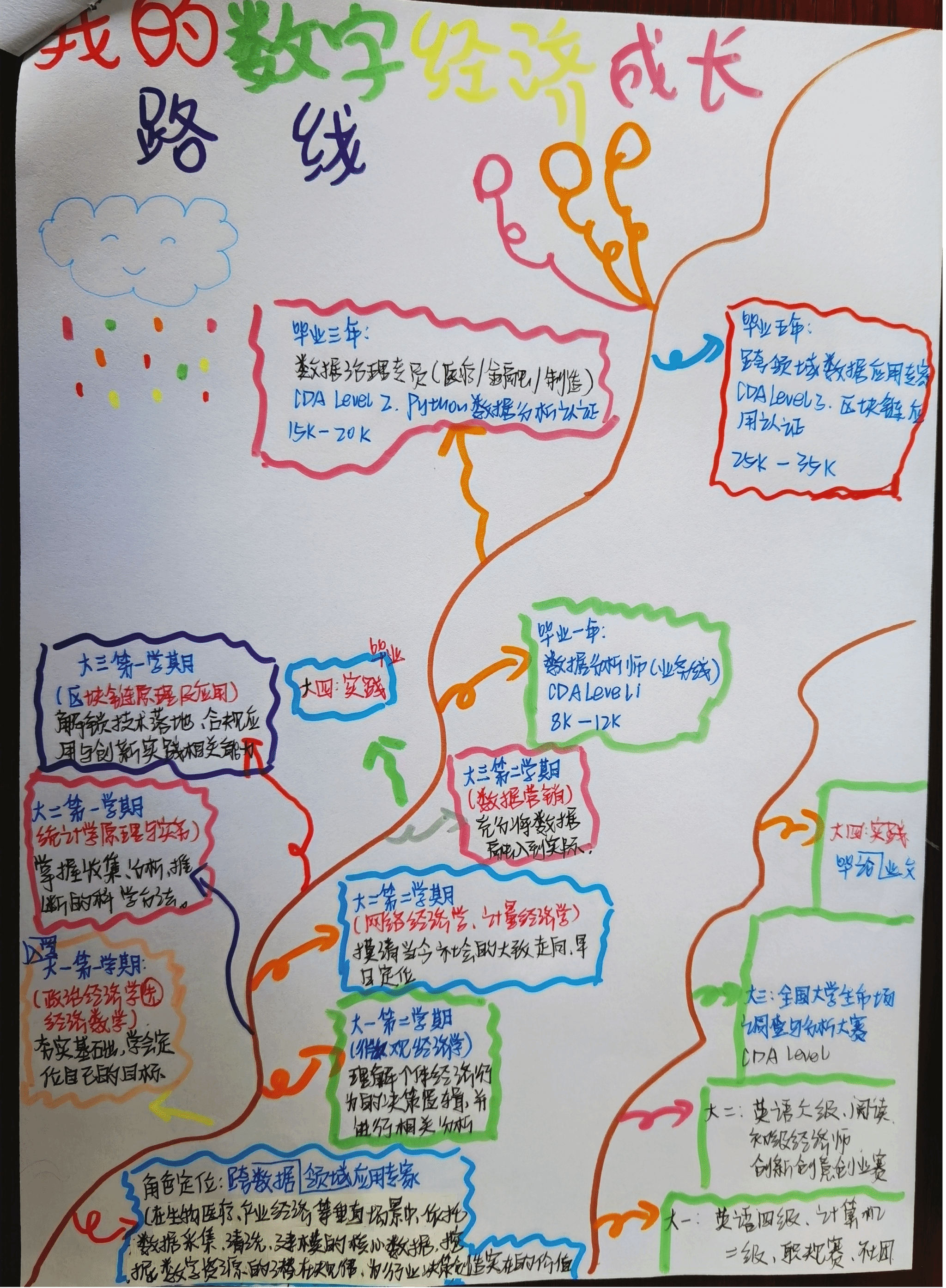 图为学生完成的“我的数字经济成长路线图”