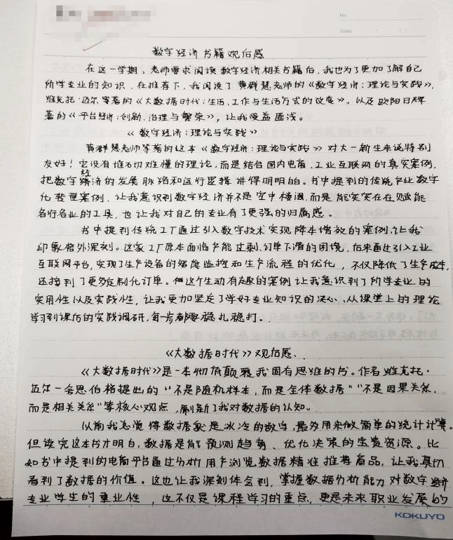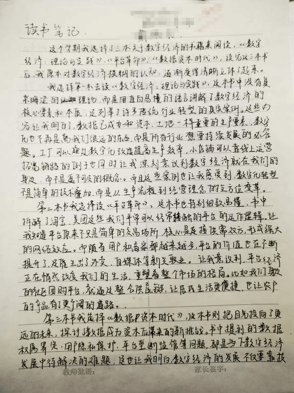 图为学生读书笔记节选