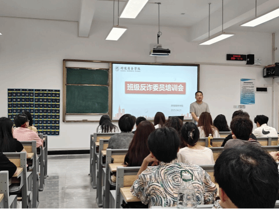 【本网讯】4月21日,重庆对外经贸学院跨境商务学院开展了班级反诈委员培训会。本次培训旨在强化班级反诈委员的专业知识与实践能力,通过理论宣讲与反诈知识测评等环节,提升学院反诈工作水平,筑牢学院反诈防线,切实保障师生财产安全。