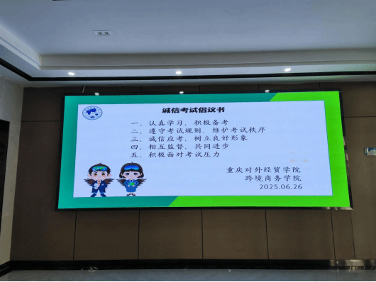 为全面落实立德树人根本任务,营造公平公正的考试环境,跨境商务学院于2024-2025学年度第二学期期末考试期间,构建“三位一体”考务管理体系,多维度推进考风考纪建设,确保考试工作规范有序开展。