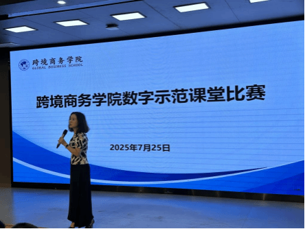 25日,为推进数字化教学改革,提升教师信息化教学能力,同时检验磨课成效。跨境商务学院举办数字示范课堂比赛。本次活动由汪林静老师主持,特邀黄学锦、唐恒书、曾芳芳、谢水清、乜堪雄五位资深教师担任评委。学院领导高度重视此次比赛,李艳副院长、赵逖院长全程出席,并对参赛教师进行指导。