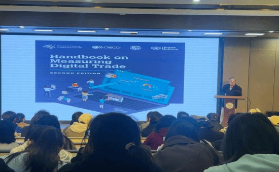 最后,讲座重点阐释了数字贸易的核心定义与分类标准,为理解当前外贸新形态提供了权威依据:明确数字贸易是通过数字订购和 / 或数字交付进行的国际贸易,该定义源自 OECD、WTO 和 IMF 的规范化界定;进一步区分数字订购贸易与数字交付贸易,前者需满足 “计算机网络载体” 和 “专用订单工具” 两大条件,后者则特指通过网络远程交付的服务类国际贸易,相关界定均参考了 2023 年第二版《数字贸易测度手册》的权威标准,为听众准确把握数字贸易内涵提供了清晰框架。