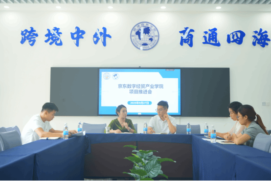 2025年9月27日,跨境商务学院于B1105会议室召开京东数字经贸产业学院项目推进会。学院院长赵逖、党总支副书记王德印及校企合作相关人员参会,会议由赵逖院长主持。