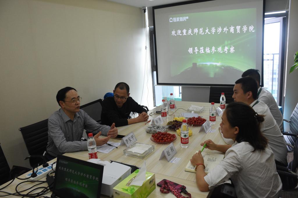重庆链家人力资源招聘经理赵利带领李院长一行人参观企业办公场地、运营项目,展示未来发展蓝图,感受企业文化和精神,介绍我院学生在企业的实习状况并给与高度肯定和认可。