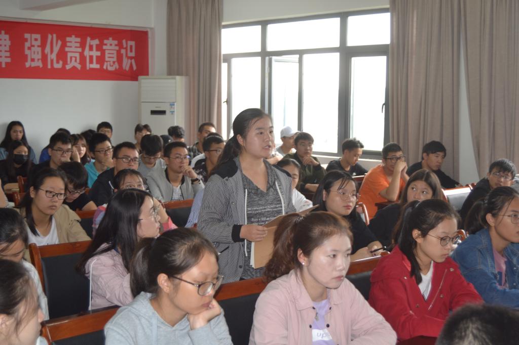 随后在师生交流互动环节中,同学们从腼腆羞涩到踊跃发言,从轻声细语到侃侃而谈,和学院领导老师就专业发展、就业前景、师资储备、考研升学、出国留学访学、党员发展与培养等问题深入交流。从这些问题中可以看出此次入学教育让许多同学对于就业方向都有了一个初步的规划,明确了学习目标和发展方向,特别是在听取领导老师的建议后,对于自己的现状也有了一定的反思,同学们表示在今后的学习和工作中会倍加努力,不断提高自我,展现自我,锻炼自我。