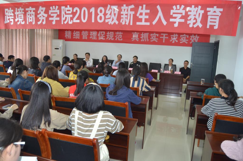 为了加强对2018级新生的教育和管理,帮助新生尽快适应学校的新环境与新生活,改变传统的单一的灌输式的入学教育方式,我院于2018年9月17日在C栋教学楼6楼大会议室对学院600多名学生采取见面交流的方式进行了入学教育的第一堂课。参加入学教育的老师有:跨境商务学院院长李安平教授,党总支书记任伟,副院长赵逖,国际交流合作处处长兼学院副院长刘用,科研办公室主任杨桢,团总支书记张雪峰,副书记冯斯迪,以及铜梁校区学院全体辅导员。