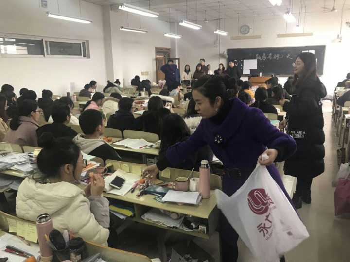 班子成员向考研学子发放慰问品和纪念品