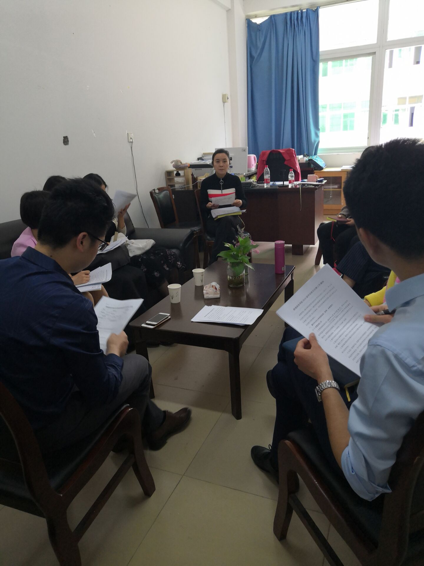 4月11日下午2点半在跨境商务学院7106办公室召开近期教学工作各项工作的教研室主任研讨会议,学院教学副院长、教科办主任、系主任、各教研室主任、教学秘书等参加了本次会议 。