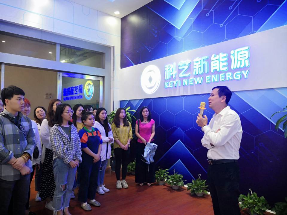 游学团队于下午14:00--15:00,聆听了钦州外轮代理有限公司主管刘彩凤主讲的散货、集装箱报关流程。随后,游学师生带着理论知识,走入中马产业园、广西鑫得利科技股份有限公司、科艺新能源公司,进一步对理论进行升华,学习3D曲面热弯玻璃技术、直流充电桩 、新能源汽车等跨境业务在报关方面实际应用。