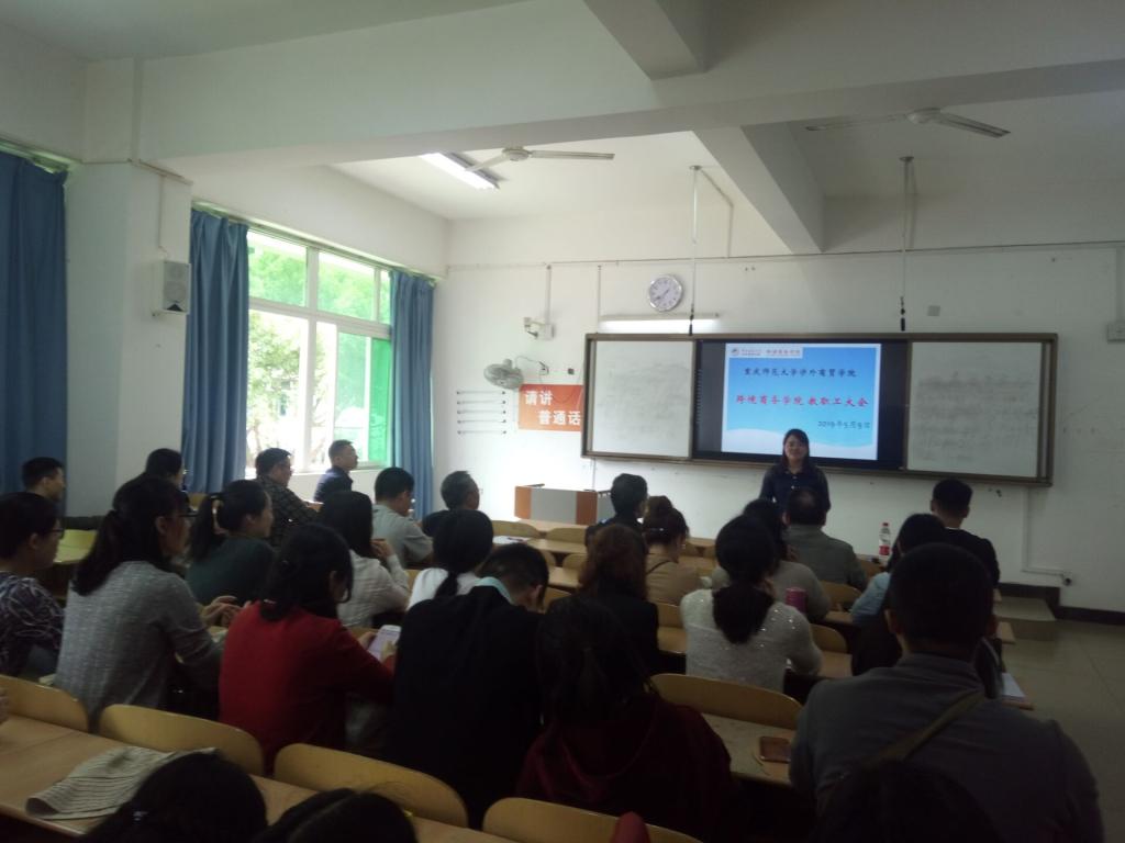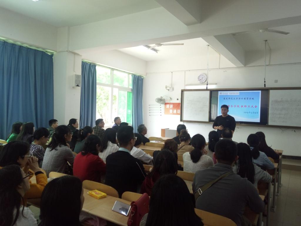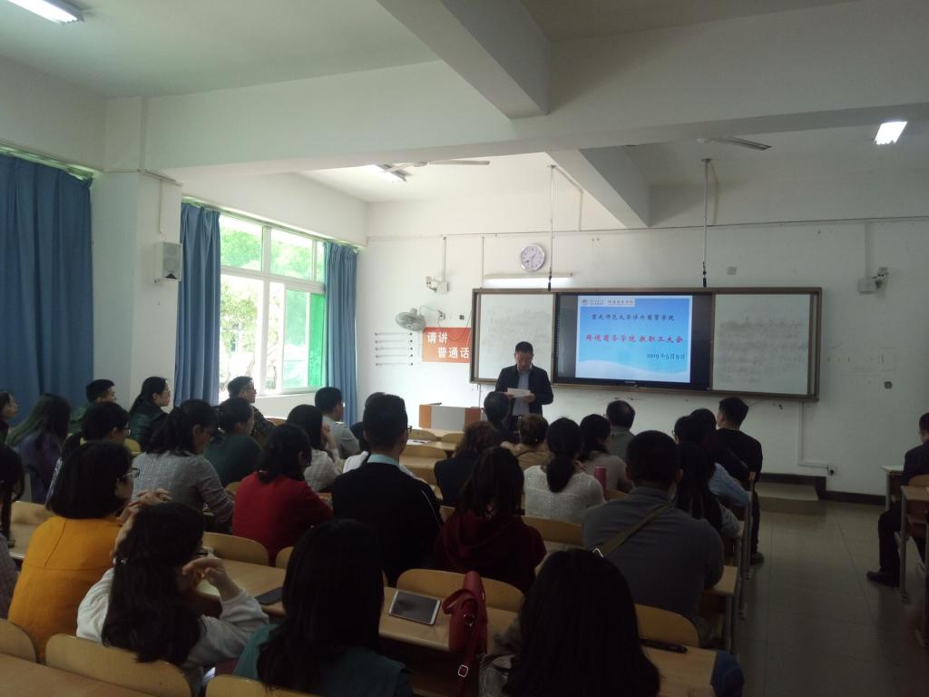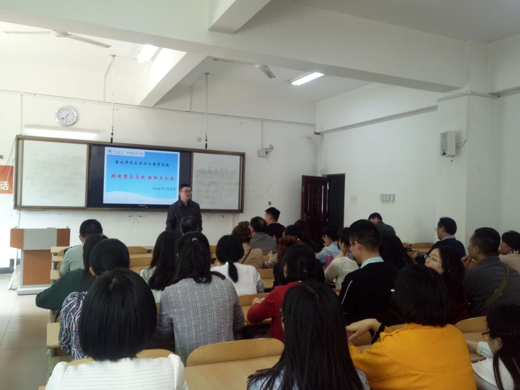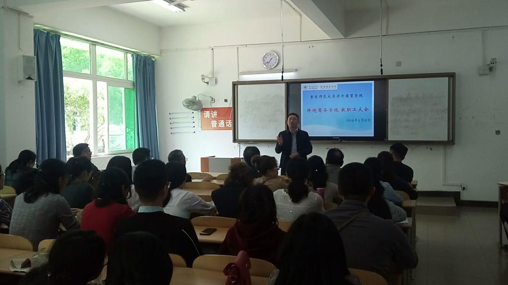 2019年5月9日下午13:30,跨境商务学院于7202召开全院教职工大会。会上,学校校长李明海教授宣读了对跨境商务学院副院长李艳的任命决定并发表讲话,大会由学校人事处处长彭成主持,学校党政办副主任刘卫民出席,学院全体教职工参会。