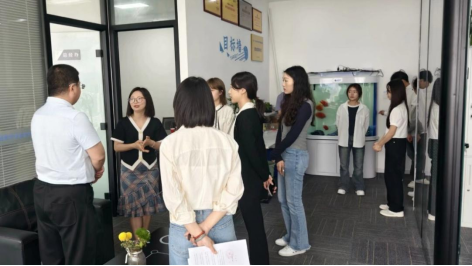 活动伊始,重庆知链教学设备有限公司的贾总,带领师生参观了公司,并详细介绍了公司发展历程。该公司专注教学设备领域,在数字经济浪潮下,积极将数字技术融入教育产品与服务。其开发的智能区块链教学平台、虚拟数字经济实验室模拟系统等,借助数字技术模拟真实经济场景,助力数字经济知识在教育领域的传播与应用,让师生们切实感受到了科技力量与数字经济的发展潜力。