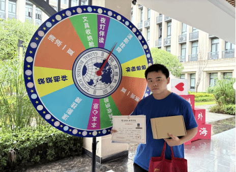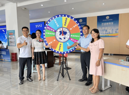 为确保迎新活动顺利开展,学院在9月6日前完成全流程筹备工作:精心规划两校区迎新场地,明确大门口接待点、中庭特色活动区、报到区、打卡点的功能划分;采购并运输学院专属定制纪念品(笔记本、夜灯笔筒、帆布袋、扇子等)及学校文创雪糕,其中文创雪糕全程做好冷藏处理;组建迎新志愿者团队并开展专项培训,重点讲解跨商元素特色服务礼仪,明确志愿者在迎接、引导、报到协助等环节的职责;同时对接两校区负责老师确认报到流程与材料,完成转转盘道具制作调试及打卡点布置,为迎新活动筑牢基础。